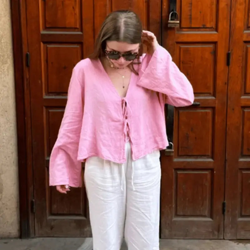 If you’re looking for lightness, sophistication and versatility, the Women’s Linen Blouse with Drawstring and Long Sleeves is the perfect choice. Designed for modern women who want an outfit that’s both elegant and comfortable for every occasion.